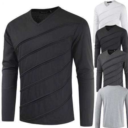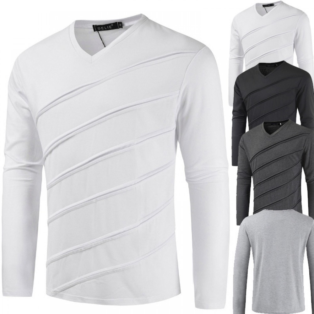 New Summer Men's Short-Sleeved T-Shirt Mens Contrast Striped Slim-Fit Casual T-Shirt