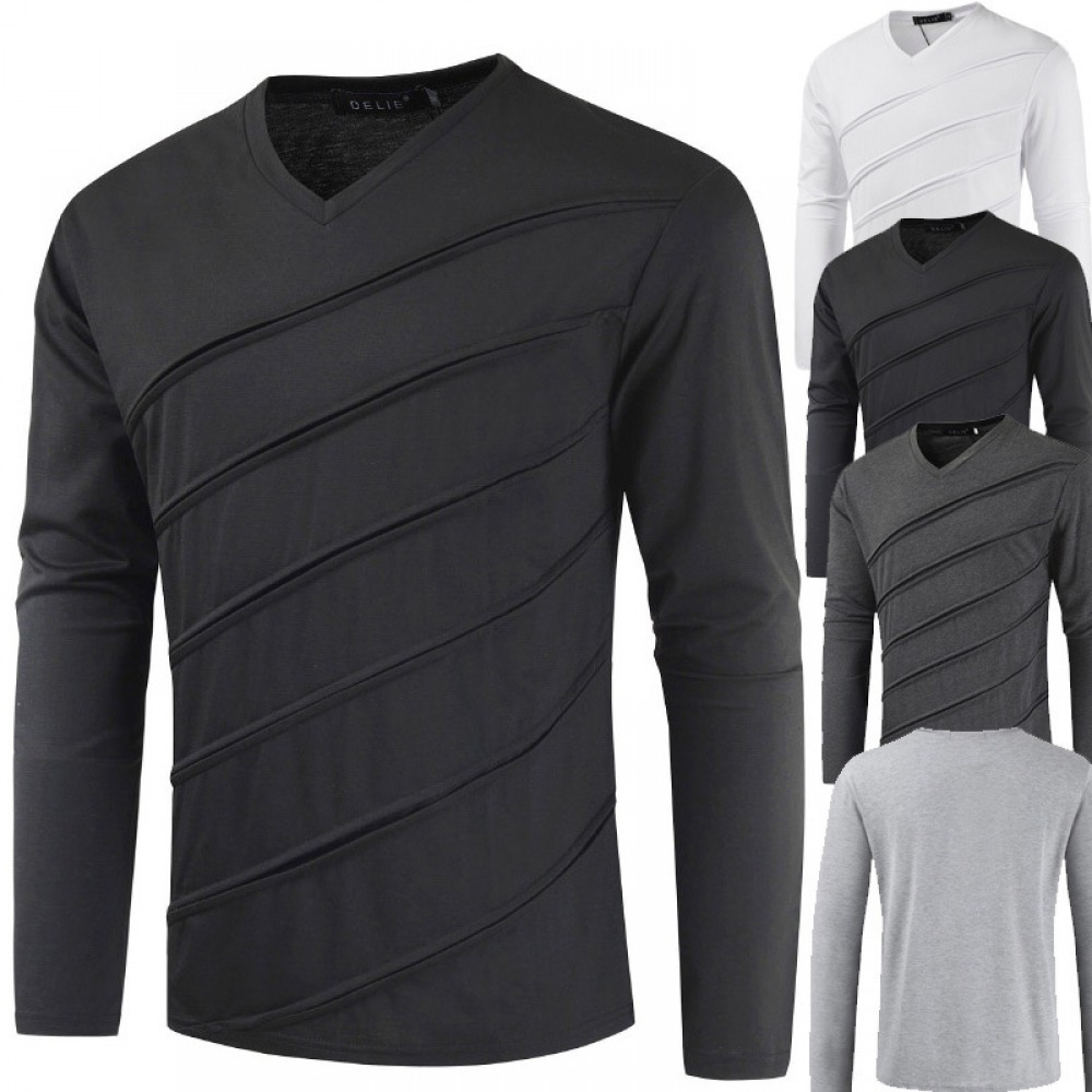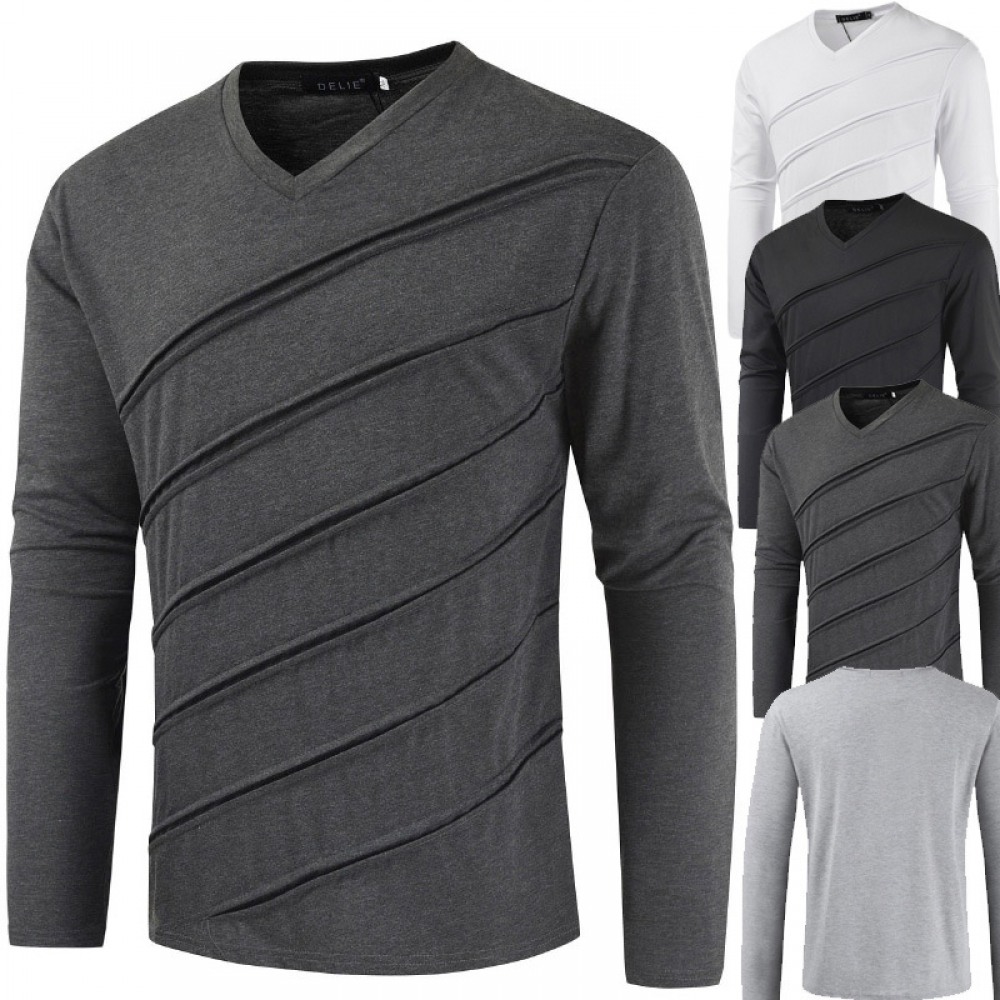 Fashion Casual Summer New Hollow Out Long Sleeve V-Neck Solid Color T-Shirt