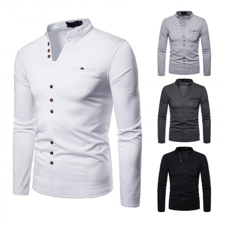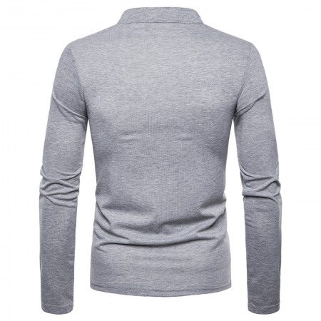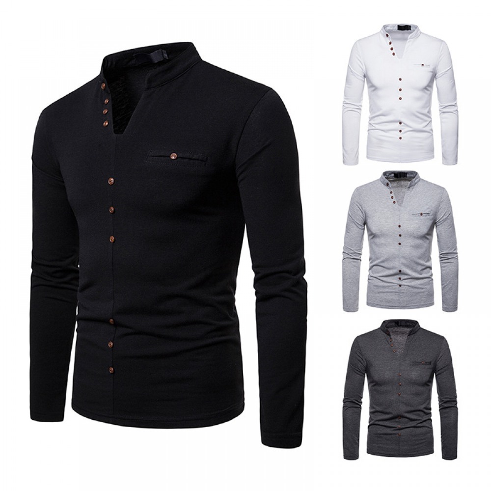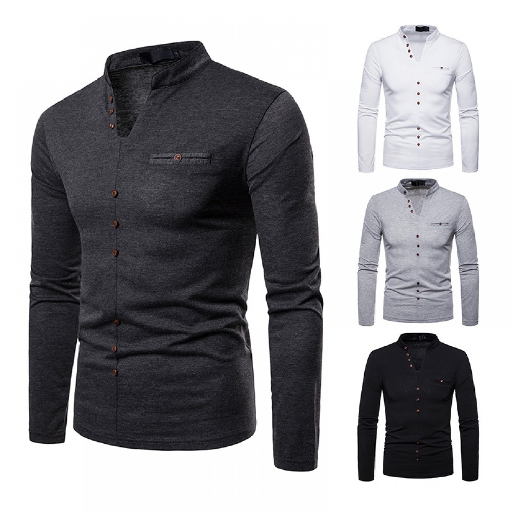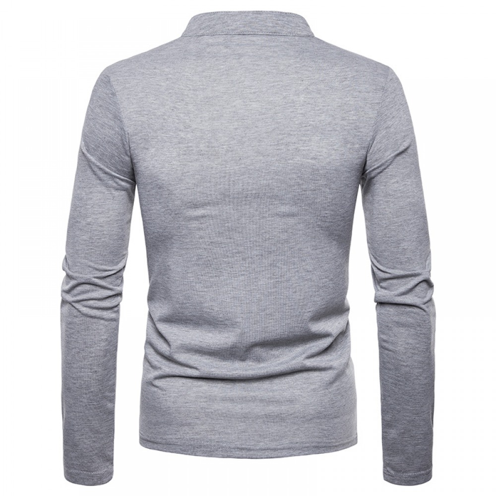 Men's Henry Collar Color Matching Long-Sleeved Plus Size T-Shirt