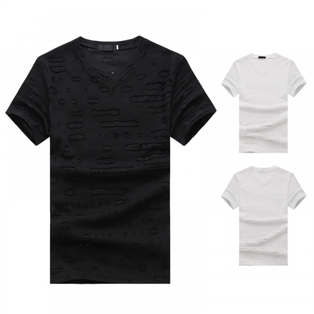 New Year Lapel Short Sleeve Men's Casual T-Shirt White Bottoming T-Shirt