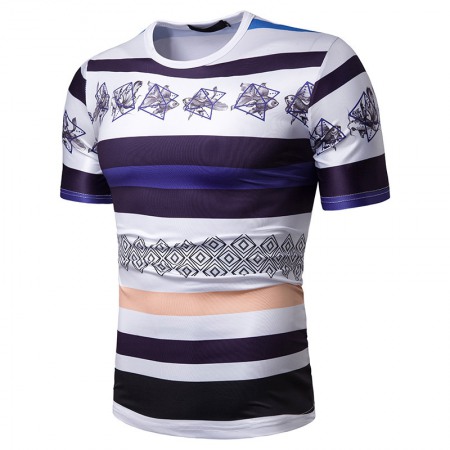 New Summer Men's Short-Sleeved T-Shirt Men's Contrast Striped Slim Casual T-Shirt