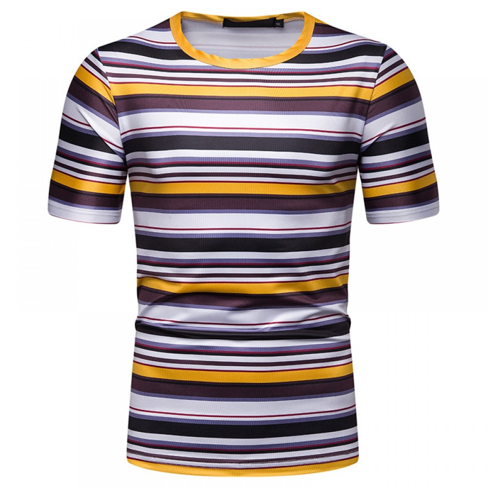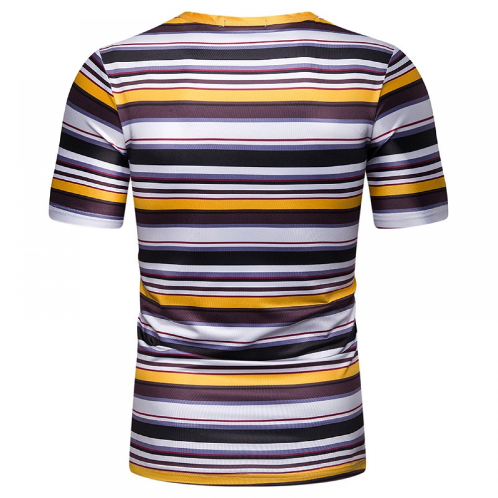 New Summer Men's Short-Sleeved T-Shirt Mens Contrast Striped Slim Casual T-Shirt