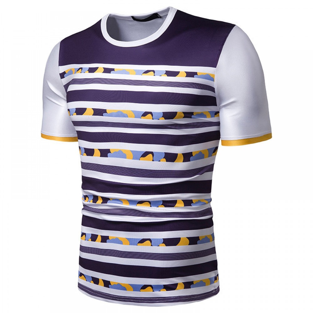 New Summer Men's Short-Sleeved T-Shirt Mens Contrast Striped Slim-Fit Casual T-Shirts