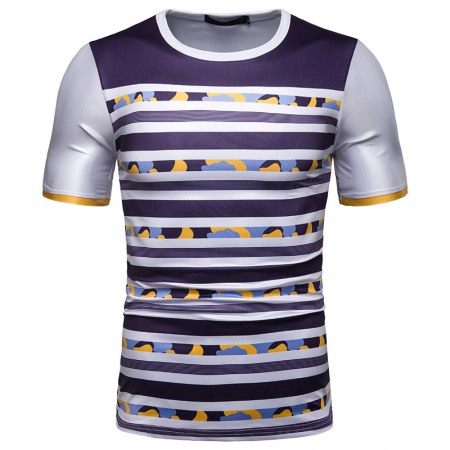 New Summer Men's Short-Sleeved T-Shirt Mens Contrast Striped Slim-Fit Casual T-Shirt