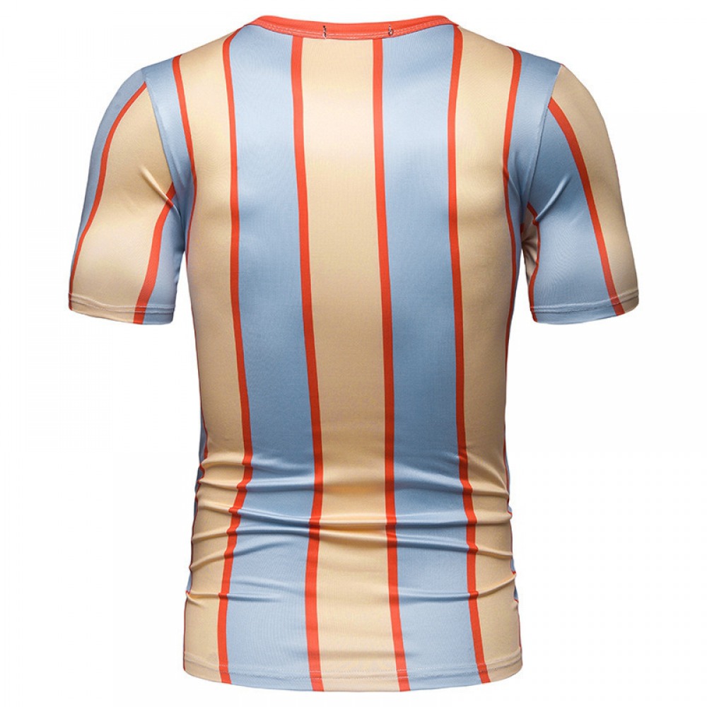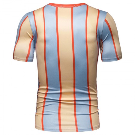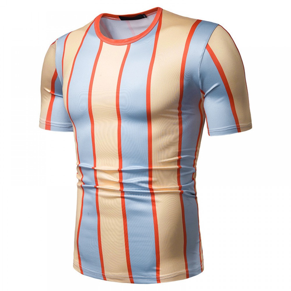 New Summer Men's Short-Sleeved T-Shirt Mens Contrast Striped Slim Casual T-Shirt