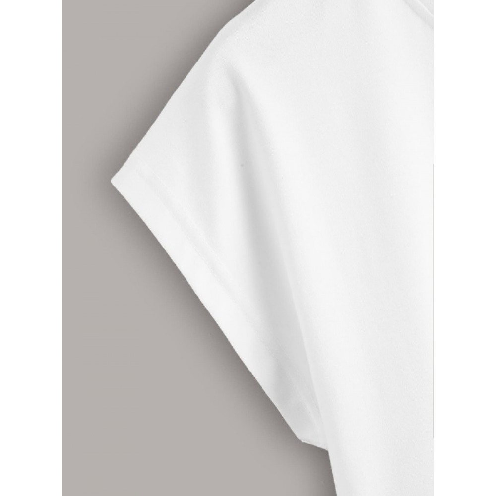 Print Round Neck Short Sleeve T-Shirt Women