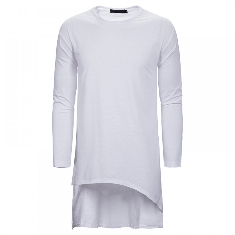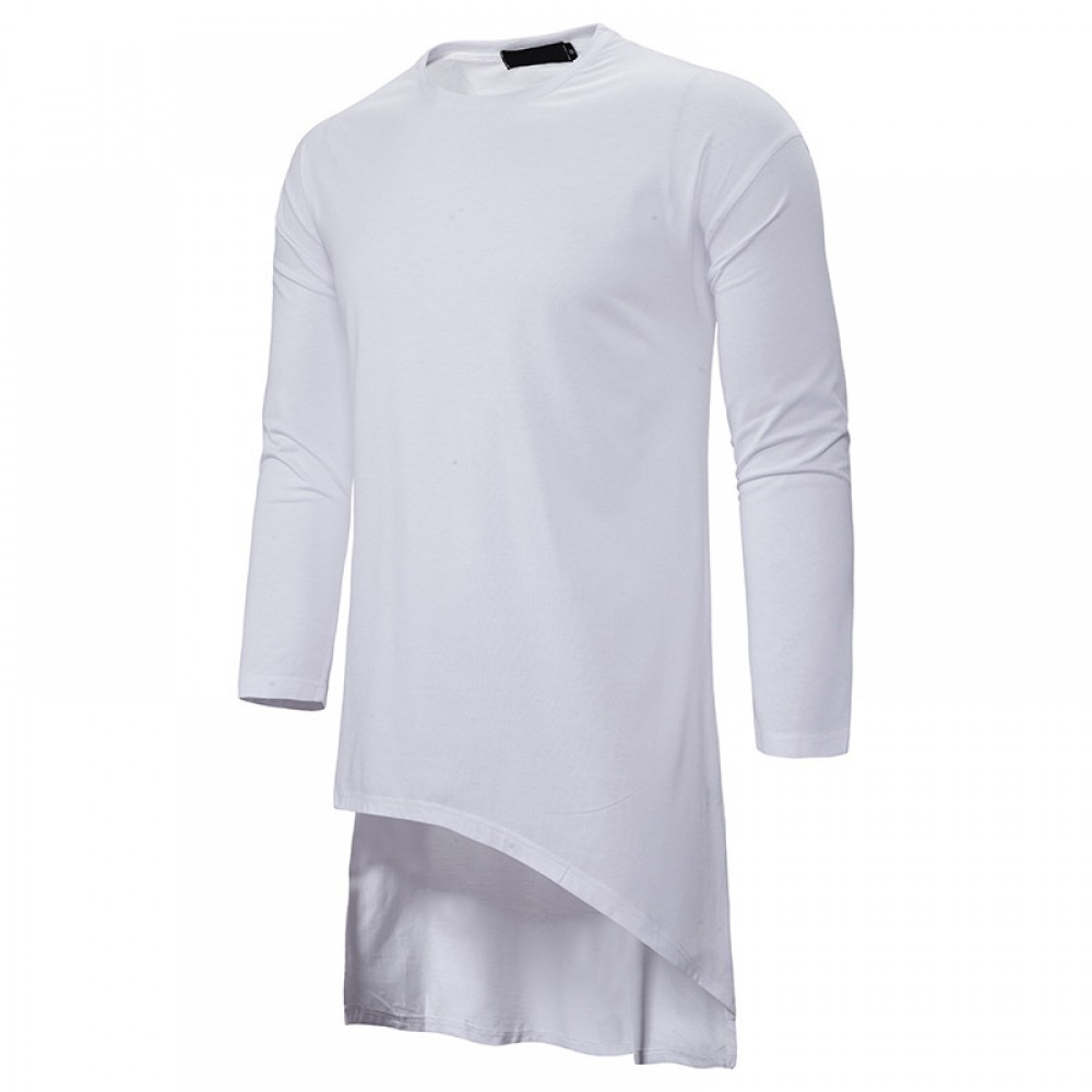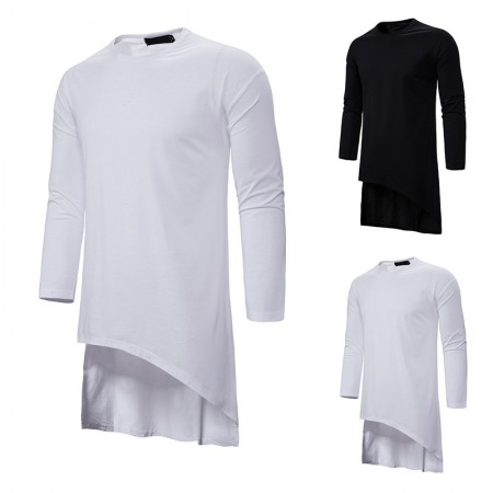 Round Neck Long T-Shirt Men's Loose Dark Trend Irregular Hem Men's Long-Sleeved T-Shirt