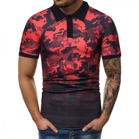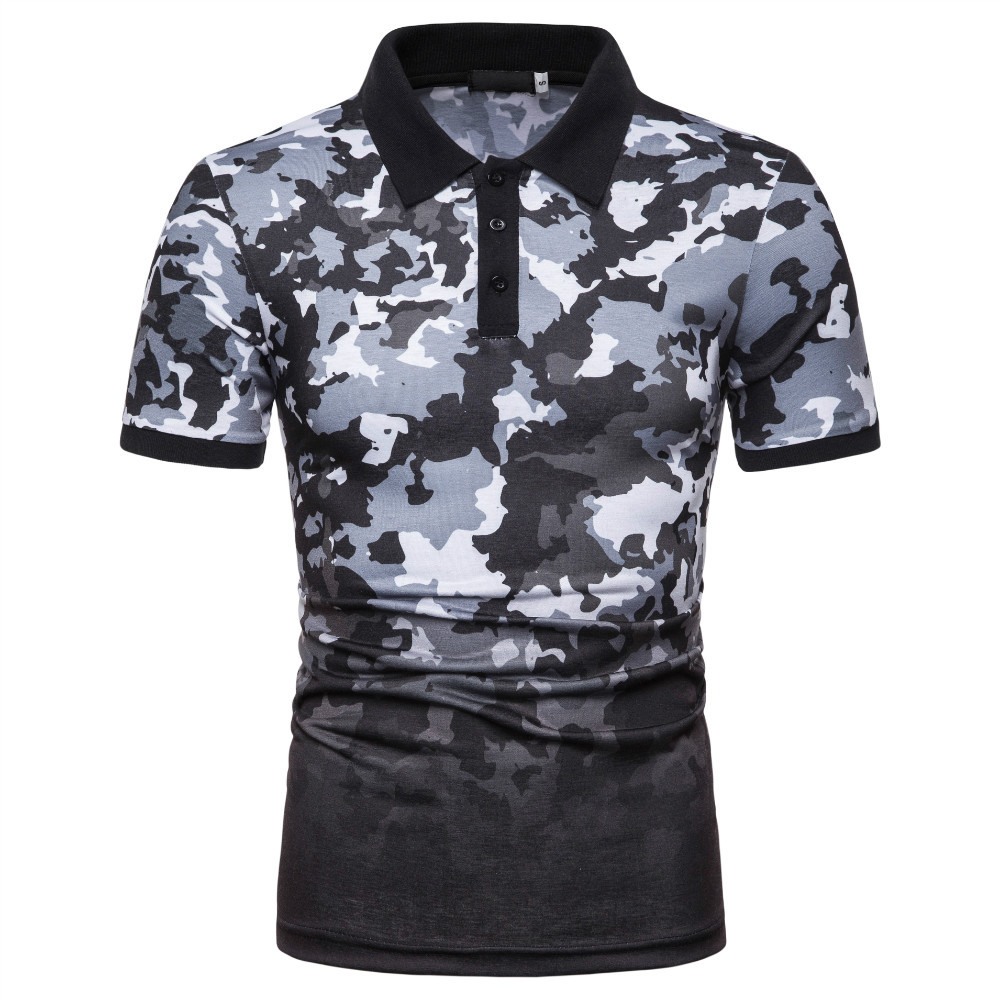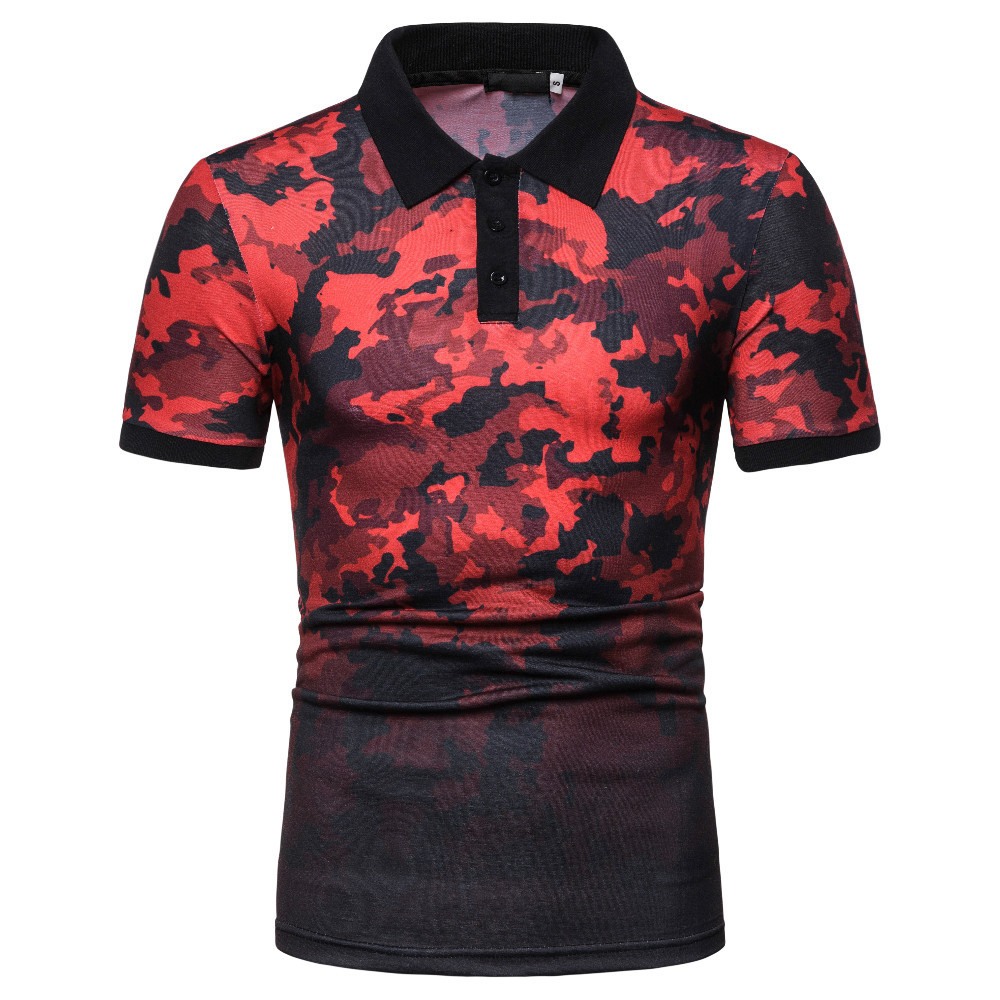 Summer New Style Men's Fashion Camouflage Print Short-Sleeved Lapel T-Shirt